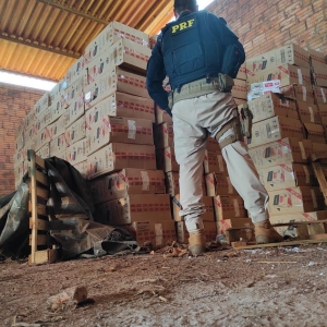 Durante a Operação Égide no Paraná, com o monitoramento de quadrilhas que atuam no contrabando de cigarros na região da fronteira com o Paraguai, a PRF identificou um depósito clandestino de cigarros na área rural de Terra Roxa, o prejuízo dos criminosos ultrapassa um milhão de reais.