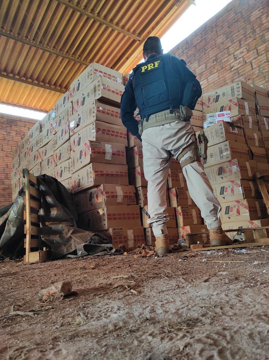 Por volta das 12h, equipes da PRF deslocaram até a área rural de Terra Roxa, dentro de uma propriedade havia um galpão utilizado por uma organização criminosa na distribuição de cigarros contrabandeados na região da fronteira com o Paraguai.