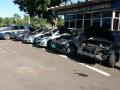 Na sequência, o motorista saltou do Citroen com o carro ainda em movimento. Ele tentou fugir a pé, mas foi alcançado e preso pelos agentes da PRF. Já o carro seguiu sua trajetória, cruzando a rodovia pela contramão, caindo em um barranco. Com placas clonadas, o Citroen C4 Pallas havia sido roubado no último dia 3 de janeiro, em São José dos Pinhais (PR). O homem que dirigia o carro apresentou uma carteira de habilitação falsa, em nome de outra pessoa. Ele tinha um mandado de prisão aberto contra si. Já o Hyundai HB20 havia sido roubado ontem (15), também em São José dos Pinhais. E o Honda Civic, em Londrina (PR), no mês de julho de 2014. Ambos também portavam placas frias. O motorista do Civic também era foragido da Justiça. A bordo de um Volkswagen Gol, outras três pessoas —dois homens uma adolescente de 17 anos de idade—faziam o papel de batedores e também foram presas. O documento do motorista também tinha indícios de falsificação. A equipe da PRF abordou ainda um segundo Hyundai HB20, também com placas clonadas e alerta de roubo, registrado em 29 de janeiro, em Curitiba (PR). A princípio, conforme declaração inicial dos presos, o comboio de quatro carros roubados seguiria até Ponta Porã (MS). A PRF encaminhou os dois adolescentes para a Delegacia de Polícia Civil em Xambrê e os demais cinco presos para a Delegacia da Polícia Federal em Guaíra, junto com os veículos apreendidos.