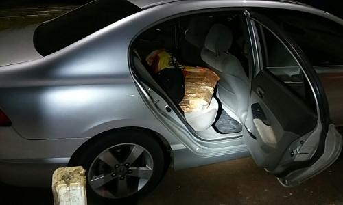 Por volta das 23 horas deste domingo (29/04/18), em frente à unidade operacional da PRF em Santa Terezinha de Itaipu/PR, km 714 da BR 277, a equipe PRF abordou um veículo Honda/Civic de cor prata e emplacado no município de Erechim/RS. Os policiais solicitaram que tanto o motorista, 35 anos, quanto a passageira, 24 anos, a qual disse ser namorada do motorista, desembarcassem do automóvel. Sendo assim, os agentes federais realizaram vistoria no interior do carro e encontraram, sobre o banco traseiro, 33 tabletes de maconha cobertos por uma manta, os quais totalizaram aproximadamente 18,670 kg (dezoito quilos e seiscentos e setenta gramas) da droga. Dessa forma, o casal recebeu voz de prisão em virtude do estado flagrancial do crime de tráfico de drogas. Posteriormente, ambos disseram que pegaram a droga em Foz do Iguaçu/PR e que pretendiam levá-la até Erechim/RS. Após consultas no sistema informatizado, a equipe PRF verificou que o veículo está registrado no nome do motorista. Os detidos foram encaminhados, junto à maconha e ao automóvel, para a Delegacia da Polícia Civil em Santa Terezinha de Itaipu/PR. .