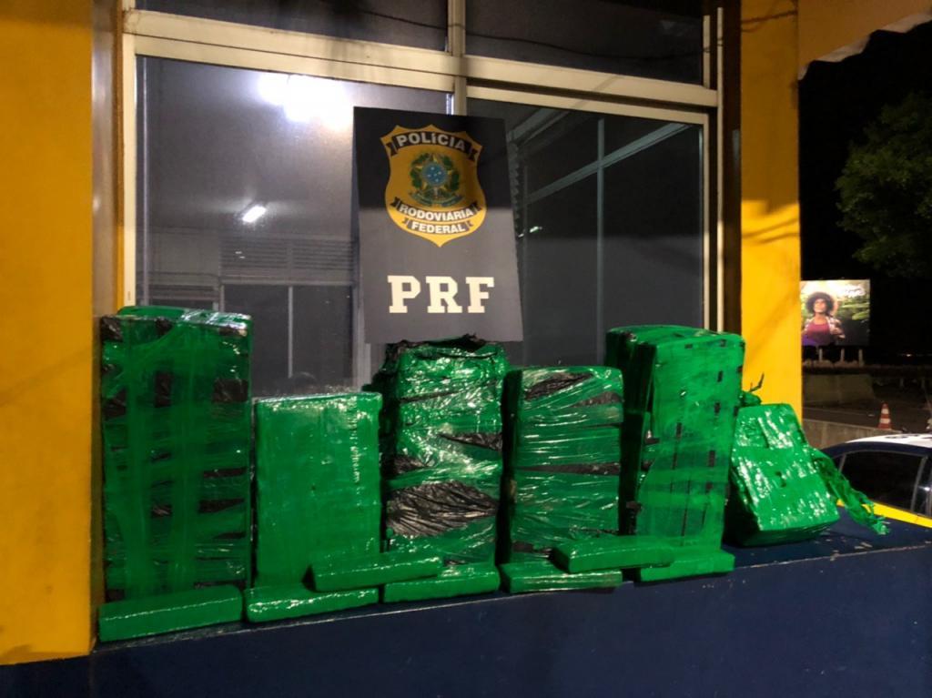 Durante a fiscalização ao veículo foram encontrados no interior do bagageiro alguns fardos com vários tabletes de substância análoga a maconha, que após pesagem totalizou 134 Kg.