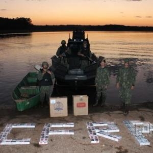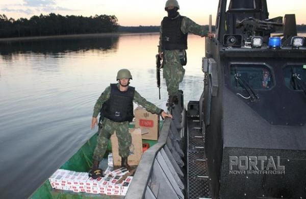 O Comando do 8º Distrito Naval (Com8DN), por intermédio da Capitania Fluvial do Rio Paraná (CFRP), apreendeu no dia 28 de agosto de 2018 mil maços de cigarros contrabandeados do Paraguai no Lago de Itaipu, na região de Porto Britânia, no município de Pato Bragado.