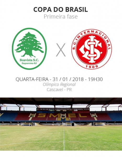 Boavista e Inter iniciam a disputa da Copa do Brasil nesta quarta-feira. Às 19h30 (horário de Brasília), as equipes se enfrentam no gramado do Estádio Olímpico Regional, em Cascavel, no Paraná, em razão de o clube carioca ter vendido o mando do campo.