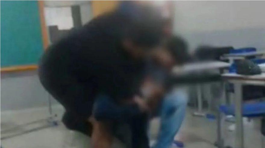 Nas imagens chocantes, o estudante é visto agarrando o educador pelo pescoço. O professor, visivelmente abalado, está abaixado no chão, tentando, juntamente com outro aluno, afastar o agressor, mas sem sucesso. A violência só é interrompida com a chegada de um terceiro estudante.