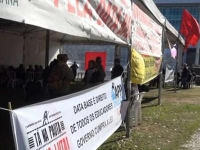 O objetivo aqui é pressionar o Governo. Em frente ao Palácio Iguaçu, as faixas e cartazes já dizem tudo, nesta terça-feira (10).
