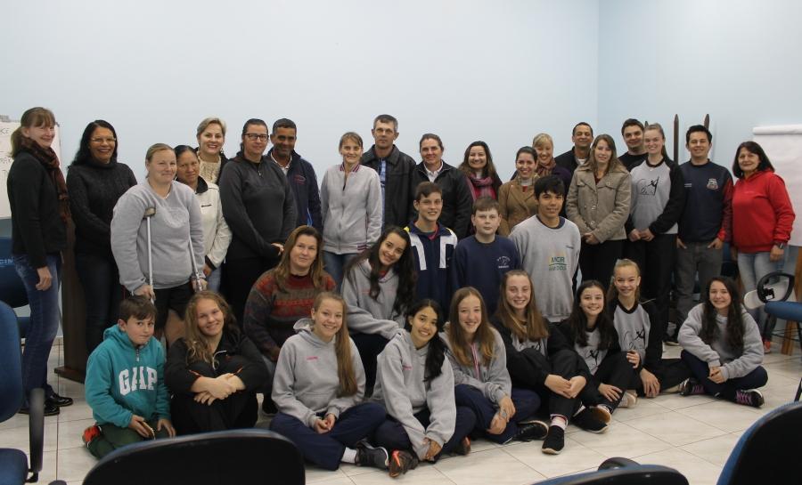 A oficialização da assinatura dos contratos foi contou também com a participação dos Técnicos Marlon Neves, Larissa Delazeri Glaeser e Catarina Triches Petri, do Diretor de Esportes Valdecir dos Santos e dos familiares dos esportistas.