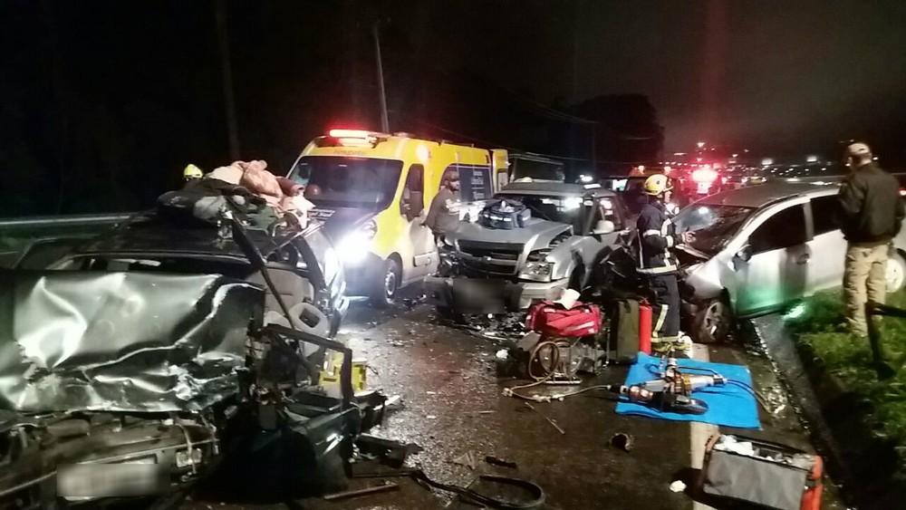 Quatro pessoas ficaram feridas em um acidente na BR-376 em São José dos Pinhais, na Região Metropolitana de Curitiba, na noite de domingo (14).