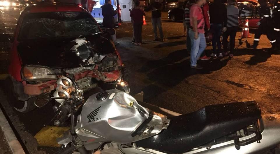 Quatro pessoas ficaram feridas, duas delas em estado grave, em um acidente registrado na noite desta terça-feira (21), na Avenida Juscelino Kubitschek de Oliveira, no bairro Cidade Industrial de Curitiba. As vítimas graves estavam em uma moto, que foi atingida por um carro.