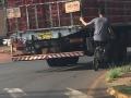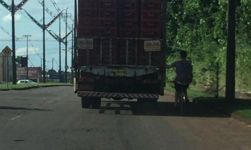 Um jovem foi flagrado pela nossa equipe do Radar BO, de bicicleta na tarde desta segunda-feira (12) da rotatória da Avenida Cirne Lima com Avenida Maripá até rotatória da Avenida Maripá com Rua Guarani em Toledo. Por mais de 300 metros o rapaz segurava na rabeta do caminhão, correndo risco de cair e sofrer ferimentos. O mesmo só largou, quando o motorista do caminhão percebeu a atitude do rapaz.