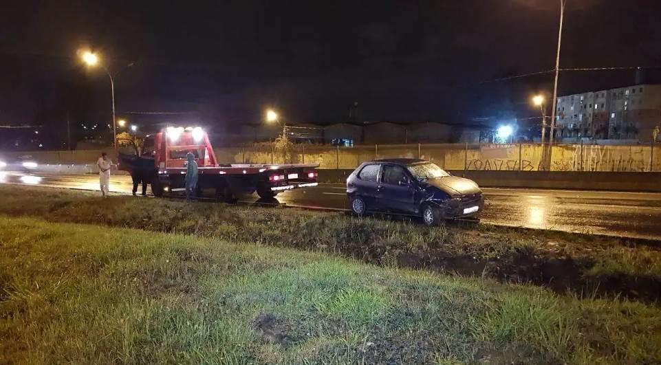 Um rapaz que retornava do trabalho na noite desta quarta-feira (14) se envolveu em um acidente de trânsito ao desviar de um cachorro na BR-116 em Colombo. O acidente aconteceu próximo a trincheira do Atuba, quando o cachorro tentou atravessar a rodovia. O condutor acabou se assustando, freou bruscamente e acabou colidindo contra a mureta central, o carro saiu desgovernado e caiu dentro de uma valeta. No impacto ele sofreu ferimentos moderados.