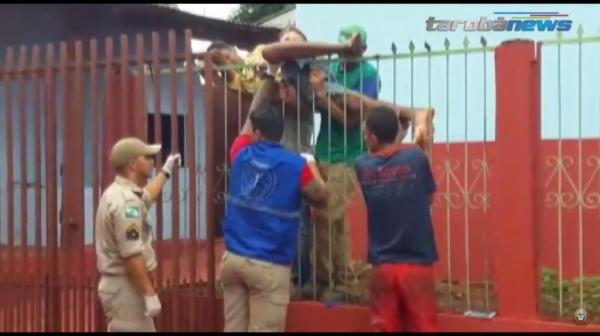 De acordo com as informações, o rapaz tentou pular o portão da própria casa, mas acabou enroscando a perna nas lanças da cerca. Populares prestaram os primeiros atendimento a vítima que estava pendurada.