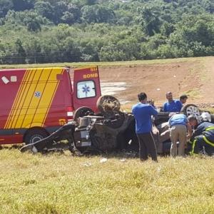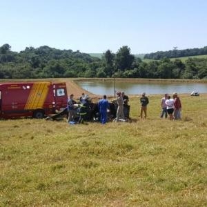 O veículo praticamente “voou”, atingiu uma cerca e só parou no terreno de um pesqueiro. O veículo ficou destruído a cerca de cem metros da rodovia.