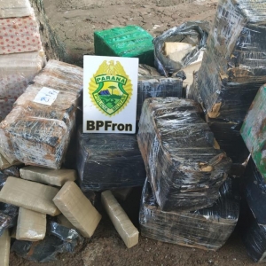 Na segunda feira (05/11) Policiais Militares do BPFron realizavam patrulhamento na cidade de Santa Helena - PR quando visualizaram um veículo Astra de cor prata. Ao iniciarem procedimentos de abordagem o condutor do veículo empreendeu fuga, dando início a um acompanhamento tático que se findou depois de alguns quilômetros quando o condutor abandonou o veículo e empreendeu fuga em meio a plantação local, não sendo localizado. No veículo com placas de Balneário Piçarras - SC foram encontrados diversos tabletes de substância similar à maconha que após pesados totalizaram 338 kg. Ainda foi localizado uma caixa contendo 42 kg de veneno agrícola contrabandeado do Paraguai. Veículo, entorpecente e veneno foram encaminhados aos procedimentos legais cabíveis.