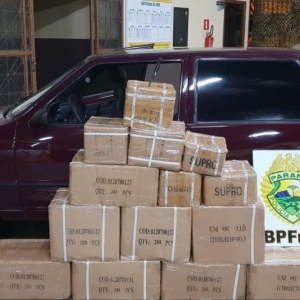 Já na noite de domingo, 04.11.2018, foi realizado patrulhamento na cidade de Foz do Iguaçu - PR quando Policias Militares do BPFron visualizaram uma movimentação de pessoas em um porto clandestino. Foi dado voz de abordagem porém os indivíduos empreenderam fuga em meio a mata, não sendo localizados. No local foram encontrados 250 pacotes de cigarros contrabandeados do Paraguai. O contrabando foi apreendido e encaminhado à Receita Federal de Foz do Iguaçu - PR para procedimentos.