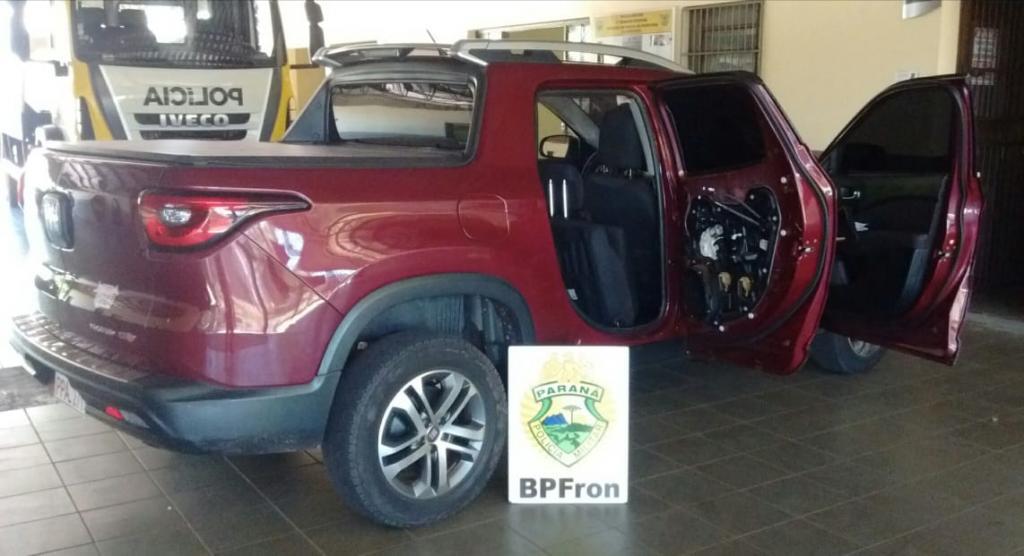 Outra ação em Guaíra – PR também na tarde de ontem (08/11) resultou na recuperação de um veículo roubado. Policiais Militares do BPFron realizavam patrulhamento na cidade de Guaíra - PR quando visualizaram um veículo Fiat/Toro de cor vermelha na garagem de uma residência que se encontrava ao abandono. Foi constatado que o veículo é produto de um roubo a residência ocorrido na cidade de Terra Roxa - PR em dezembro de 2017. O veículo foi apreendido e encaminhado aos procedimentos a fim de ser ressarcido o proprietário.
