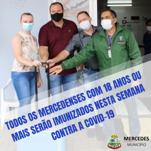 Todos os mercedenses com 18 anos ou mais serão imunizados nesta semana contra a Covid-19. “Isto só é possível graças a uma remessa de 492 doses que recebemos recentemente. De imediato, elaboramos um cronograma para aplicar os imunizantes o mais rápido possível na nossa população”, pontua o vice-prefeito e secretário de Saúde Alex Graunke.