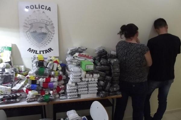 Por volta das 09h00 de ontem (25), na Avenida Parigot de Souza, Jd Porto Alegre, após investigações realizadas pela equipe de inteligência da Policia Militar em Toledo, foi realizado abordagem com apoio da Rádio Patrulha a um veículo VW Space Fox e que após feito buscas no interior do referido veículo foram identificadas 02 pessoas e com elas grande quantidade de produtos de origem estrangeira do Paraguai, remédios de venda proibida no Brasil, anabolizantes e suplementos. Encontrado ainda recibos de lojas paraguaias com relação de produtos e valores, totalizando aproximadamente 20.000 dólares em medicamentos de uso e venda proibida no Brasil. Diante dos fatos os envolvidos e mercadorias foram apreendidos e encaminhados à Polícia Federal de Cascavel pelo crime de tráfico de drogas.