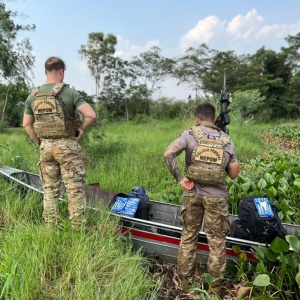 Em uma ação composta por policiais federais em conjunto com policiais militares e policiais civis do GOA (Grupamento de Operações Aéreas) realizavam patrulhamento fluvial em Guaíra quando identificaram uma embarcação com dois ocupantes que, ao notarem a presença policial, alteraram sua rota bruscamente e atracaram às margens do Rio Paraná.