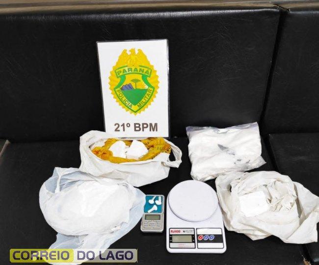 Durante a abordagem ao veículo suspeito, foram encontrados dois ocupantes, sendo um maior e um menor de idade. Após buscas, a equipe policial localizou 125,5 gramas de cocaína em posse dos indivíduos. As investigações indicaram que a droga era produzida em Francisco Beltrão e comercializada na região ao valor de R$ 50,00 o grama. Os dois suspeitos foram encaminhados à 12ª Central Regional de Flagrantes de Pato Branco.