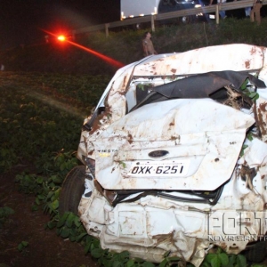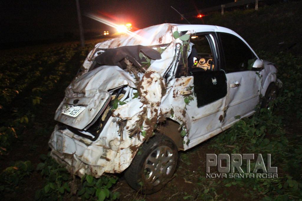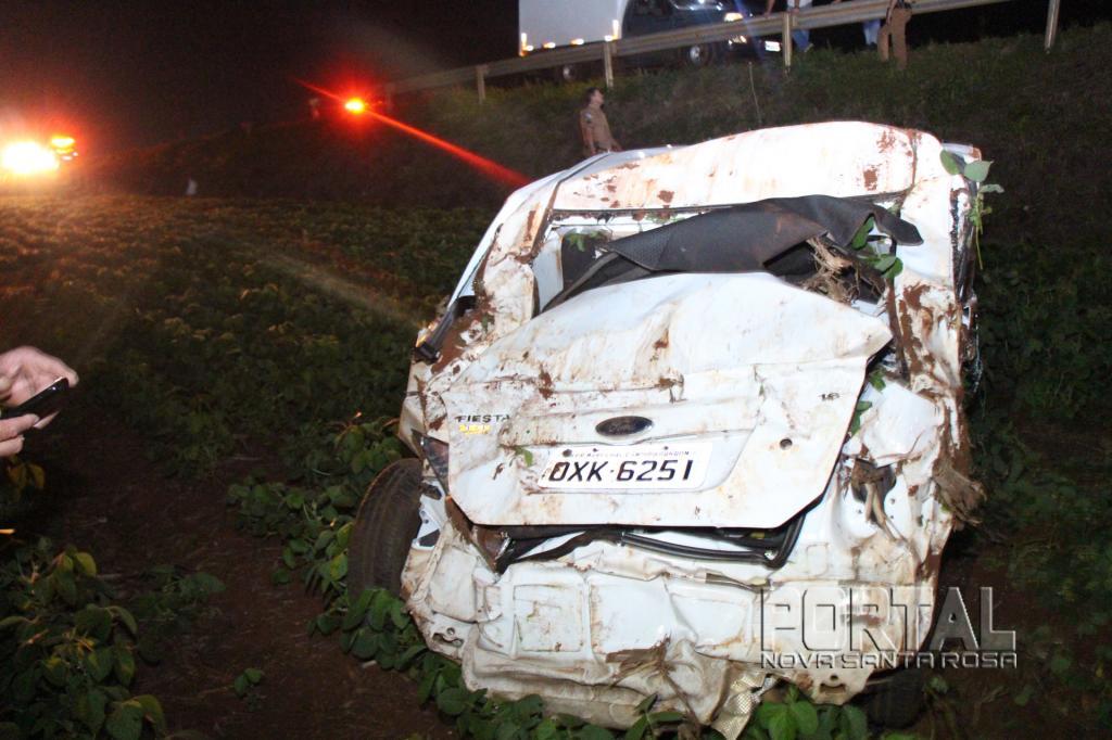 Poucos minutos após o roubo os elementos capotaram o Fiesta na rodovia BR 163 em Mercedes, o veículo ficou totalmente destruído e foi parar em uma lavoura de soja as margens da rodovia, o Fiesta caiu em um barranco de aproximadamente 4 metros.
