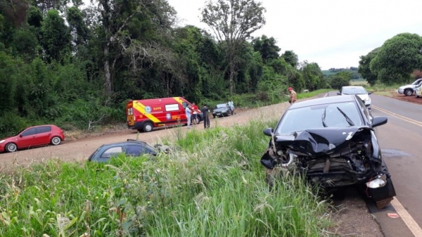 Envolveram-se no acidente um Hyundai HB20 placas Mercosul e um GM/Corsa de Capanema. Segundo informações, um dos veículos realizou uma conversão para acessar uma estrada vicinal e ocorreu a colisão.