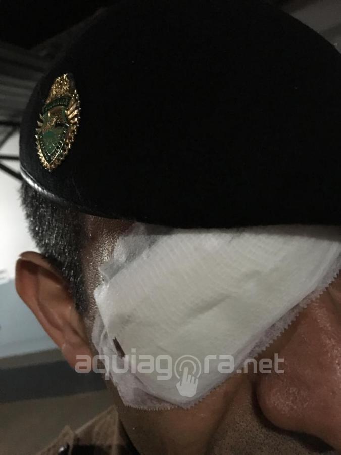 Três policias foram atingidos com o combustível, dois deles inclusive no olho. Os policias precisaram ser encaminhados para atendimento médico na UPA onde foram medicados.
