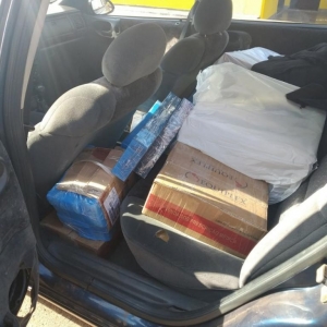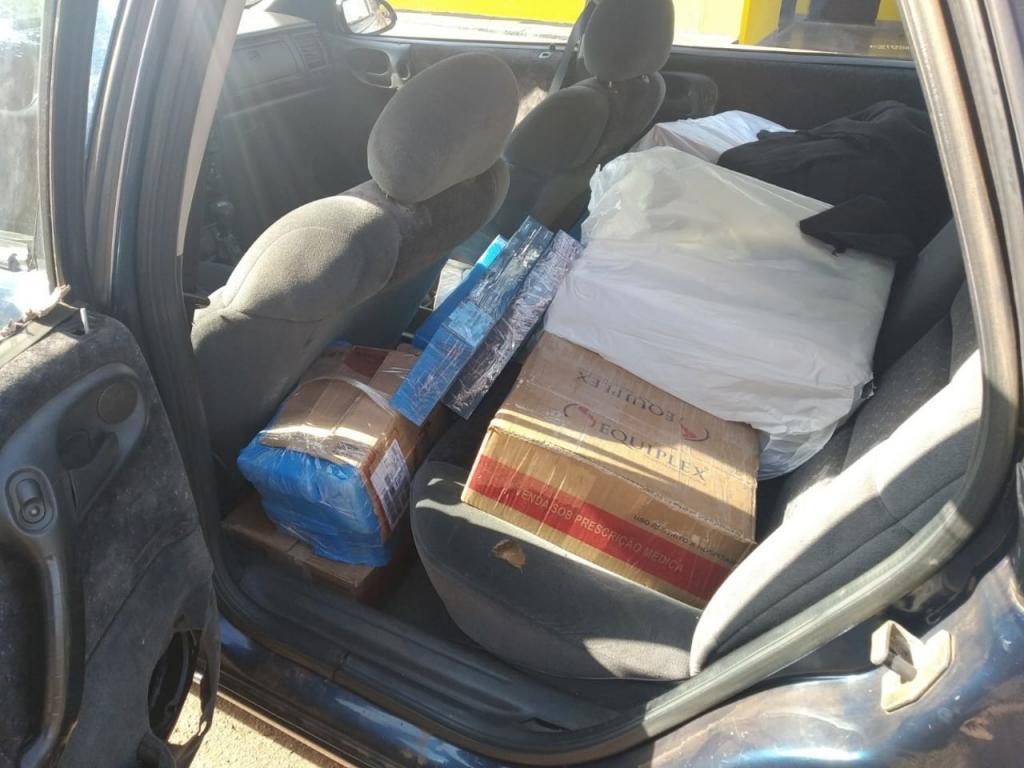 Após a verificação da documentação, foi constatado que o veículo estava com o porta malas carregado com eletrônicos (baterias de celulares, celulares , GPS perfumes, vídeo games) sem a devida documentação de importação.