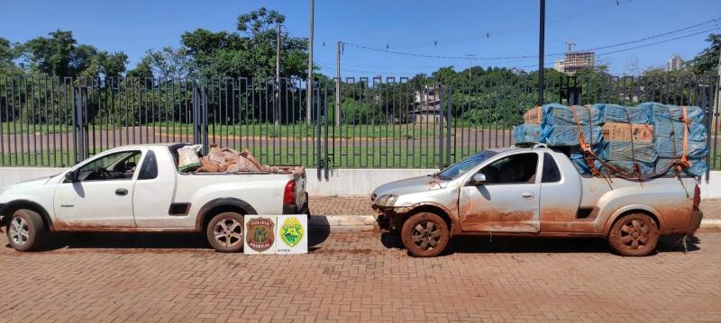 Em vistoria, os policiais constataram que as picapes estavam carregadas com aproximadamente 600 kg de agrotóxico de origem paraguaia e 50 caixas de cigarro.