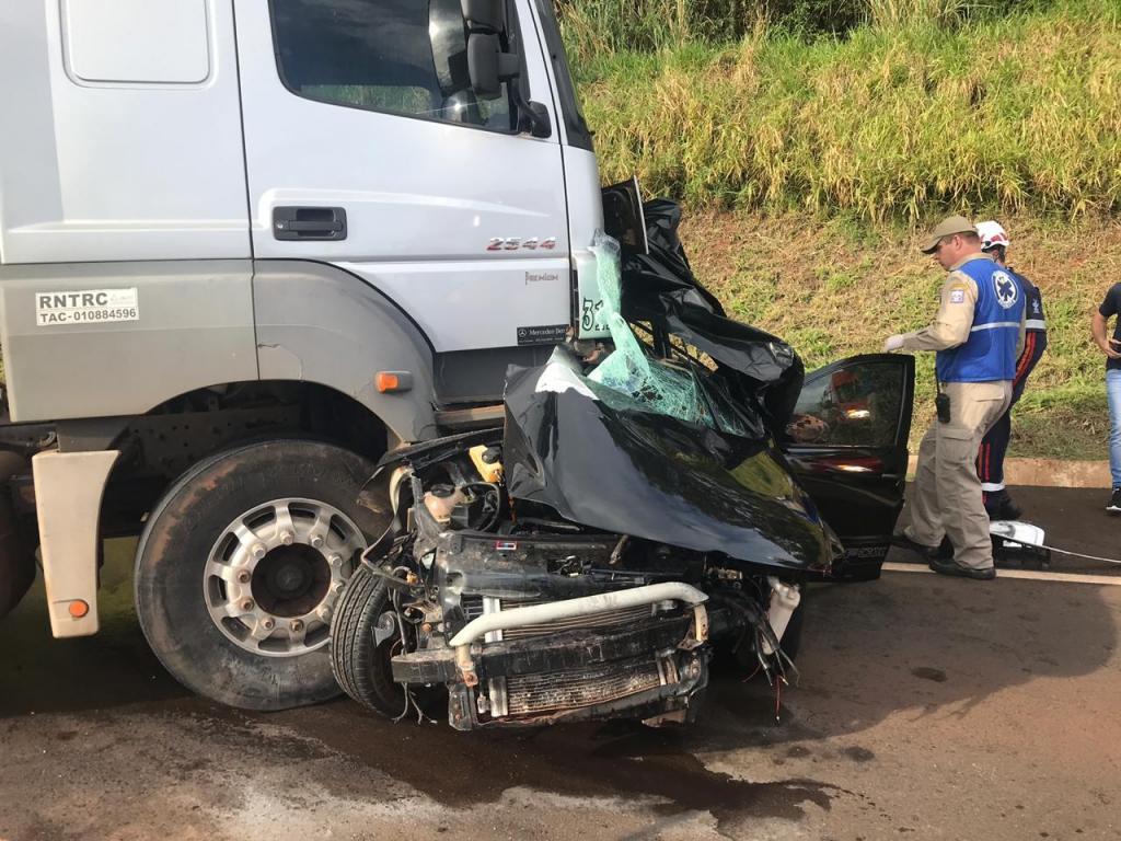 O Cross Fox com placas de Clevenlândia, colidiu de frente com uma carreta com placas de Mundo Novo.