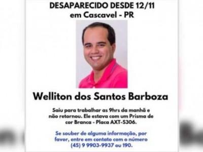 Wellinton dos Santos Barboza de 27 anos está desaparecido desde a manhã de segunda-feira (12) quando saiu para trabalhar em Cascavel.